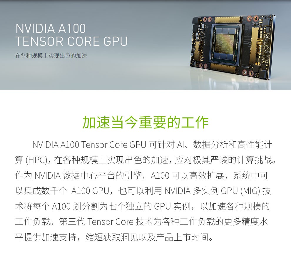 英偉達 NVIDIA Tesla A100 80G GPU卡