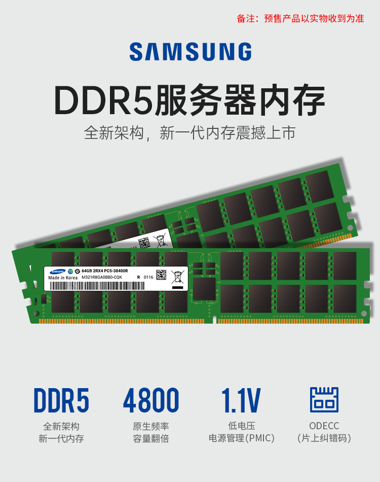 三星16G DDR5 4800 RECC M321R2GA3BB0-CQK 服務器內存條