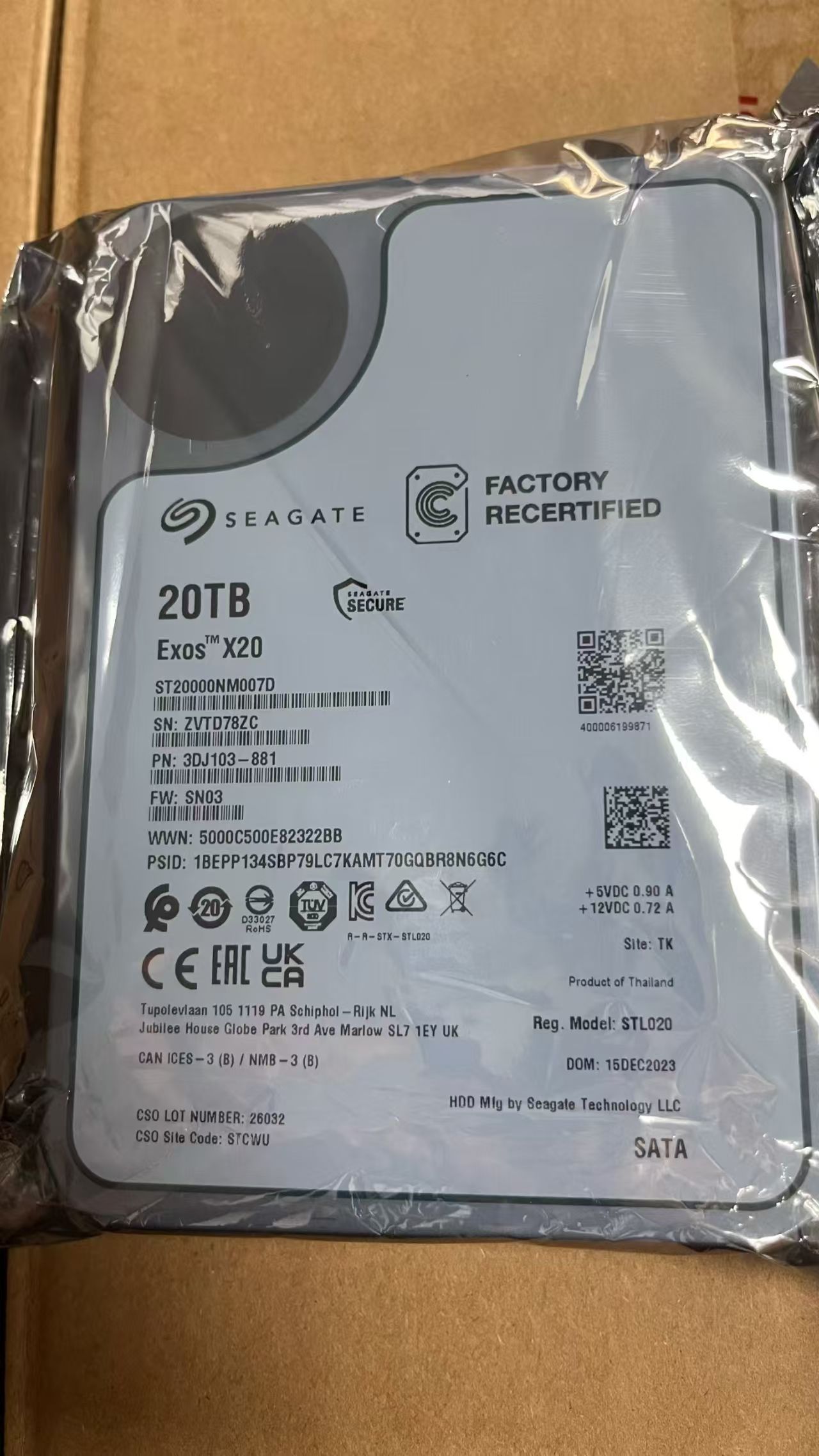 希捷20T官換盤/R盤/企業級服務器硬盤ST20000NM007D三年質保